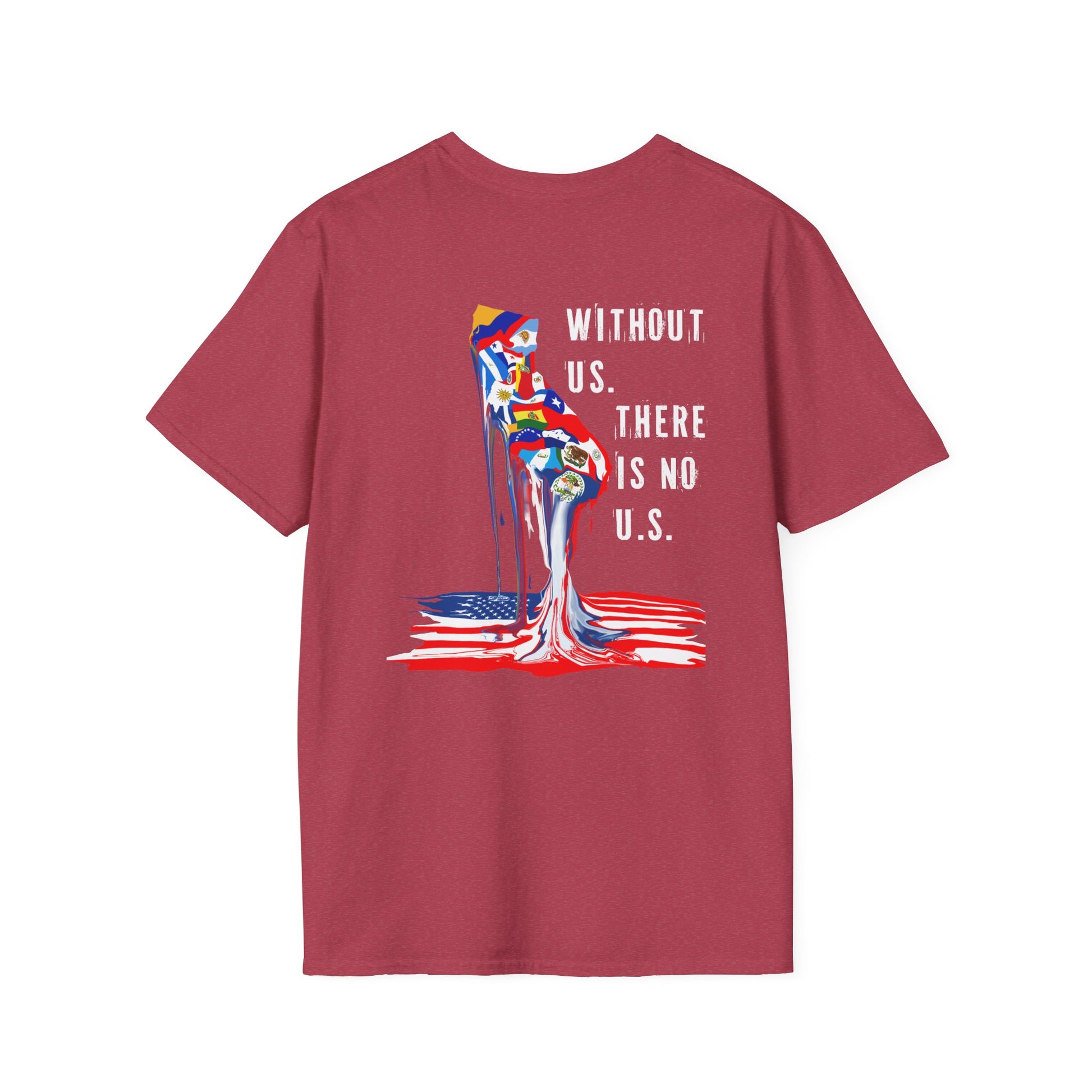 Paired with the unapologetic message “Without Us, There Is No US,” this shirt is more than apparel — it’s a protest, a reminder, and a celebration of cultural roots, immigrant resilience, and the truth behind America’s foundation.